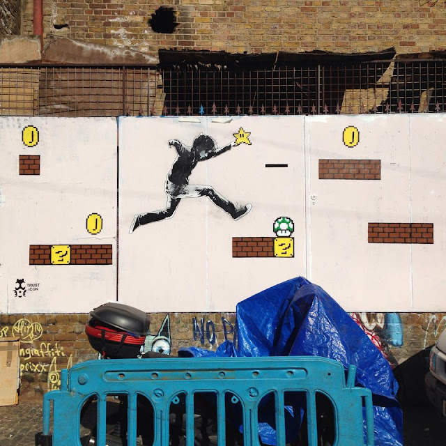 Straßenkunst, Popkultur & ein bisschen Politik. All in one mixed by Trust Icon. Der Londoner Künstler macht Kunst genau so, wie ich sie mag. Messages - gepaart mit sämtlichen Kindheitsidolen meinerseits, die auf die urbane Gegenwart treffen.