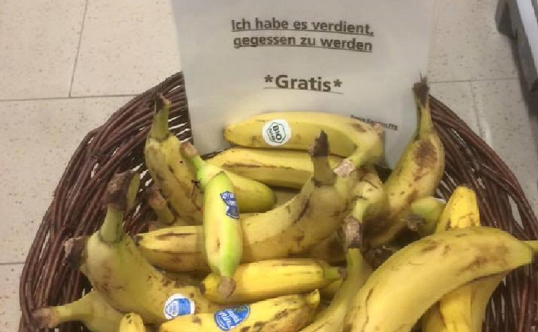 Gegen die Wegwerfkultur: Gratis-Bananen in einem deutschen Supermarkt